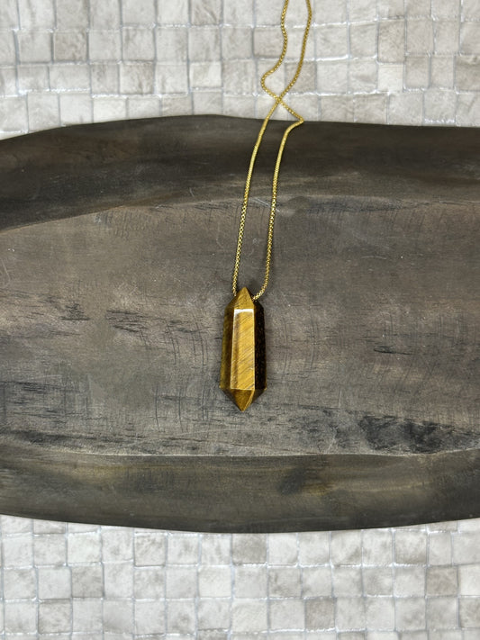 Golden Tiger's Eye Hexagon Crystal Point Necklace