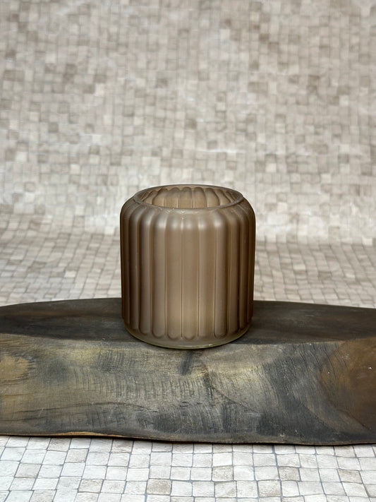 Brown Fluted Glass Crystal Infused Candle With Cotton Wick - Customisable (200g)