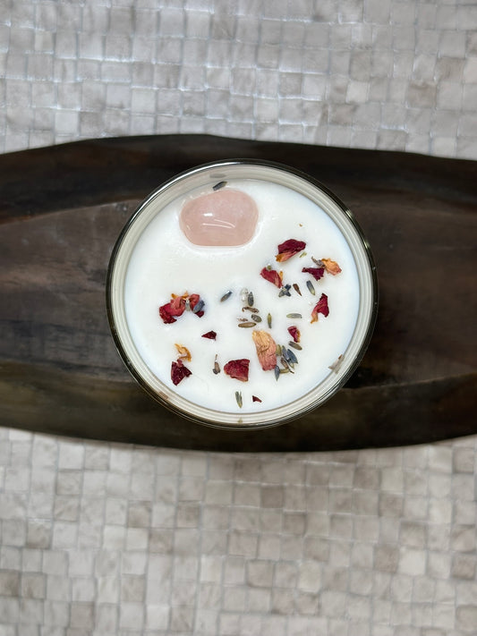 Rose Quartz Infused crystal candle - Peony & Blush Suede Scent (200g)