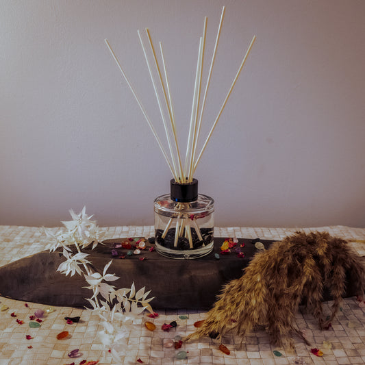 Black Obsidian Crystal Infused Reed Diffusers - Meadow Lily & Cotton Musk (100ml)