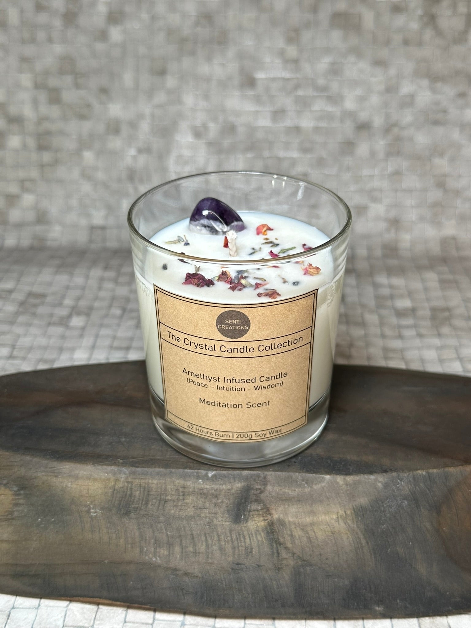 Amethyst Infused crystal candle - Meditation Scent (200g)