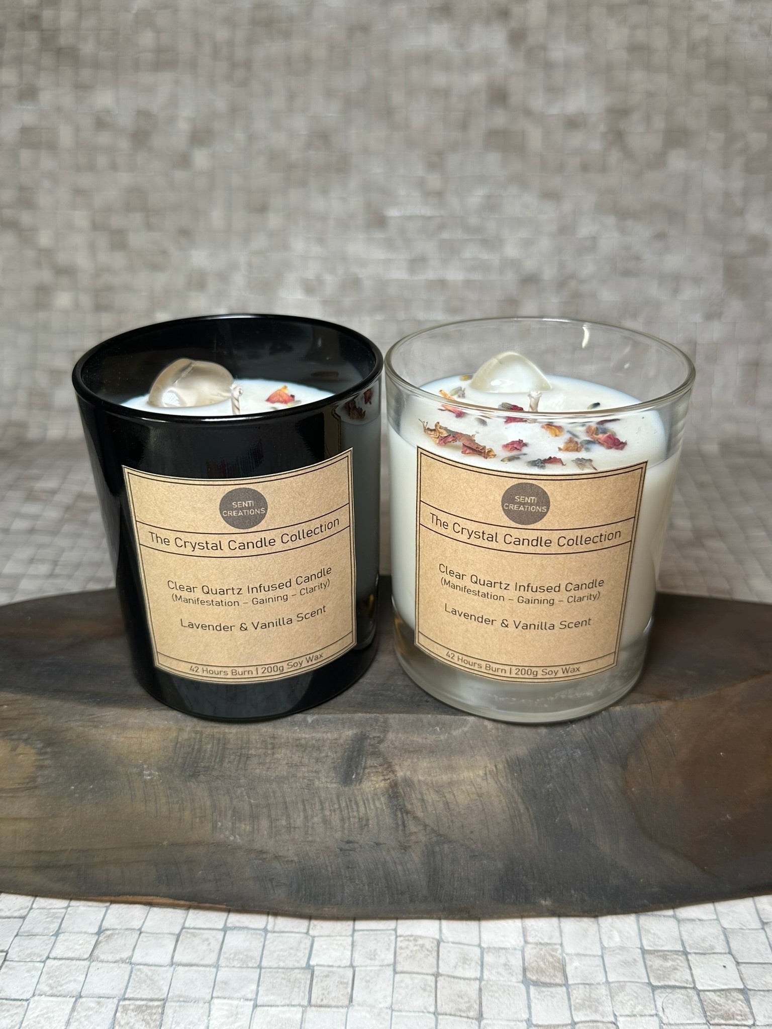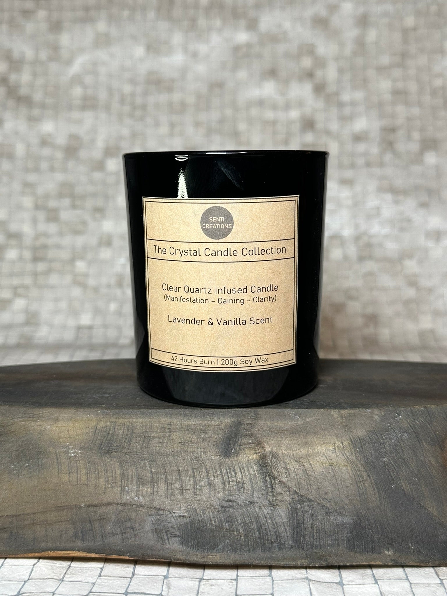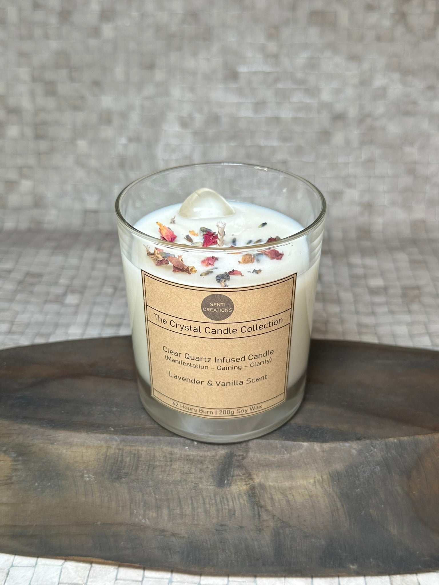 Clear Quartz Infused crystal candle - Lavender & Vanilla Scent (200g)