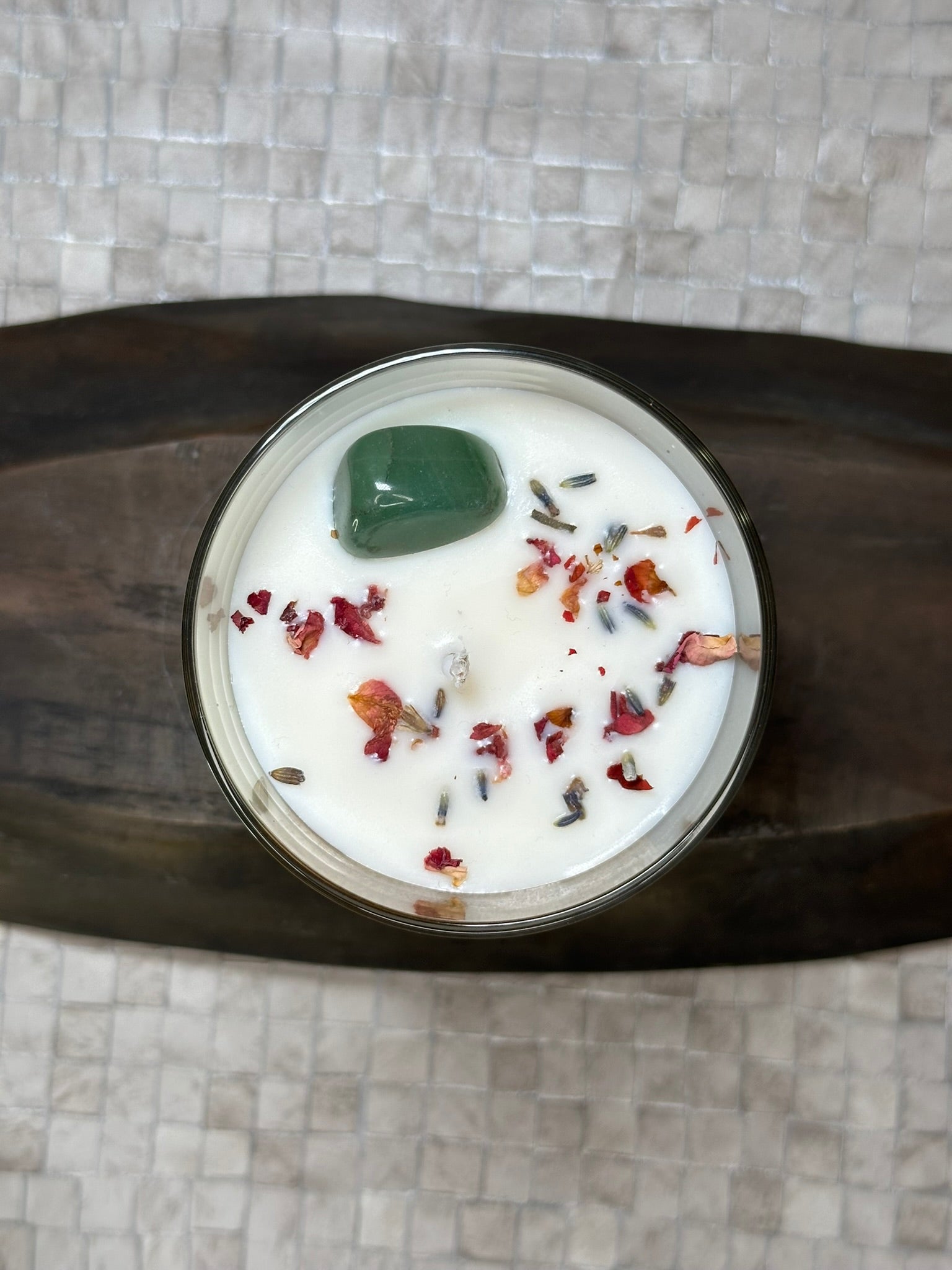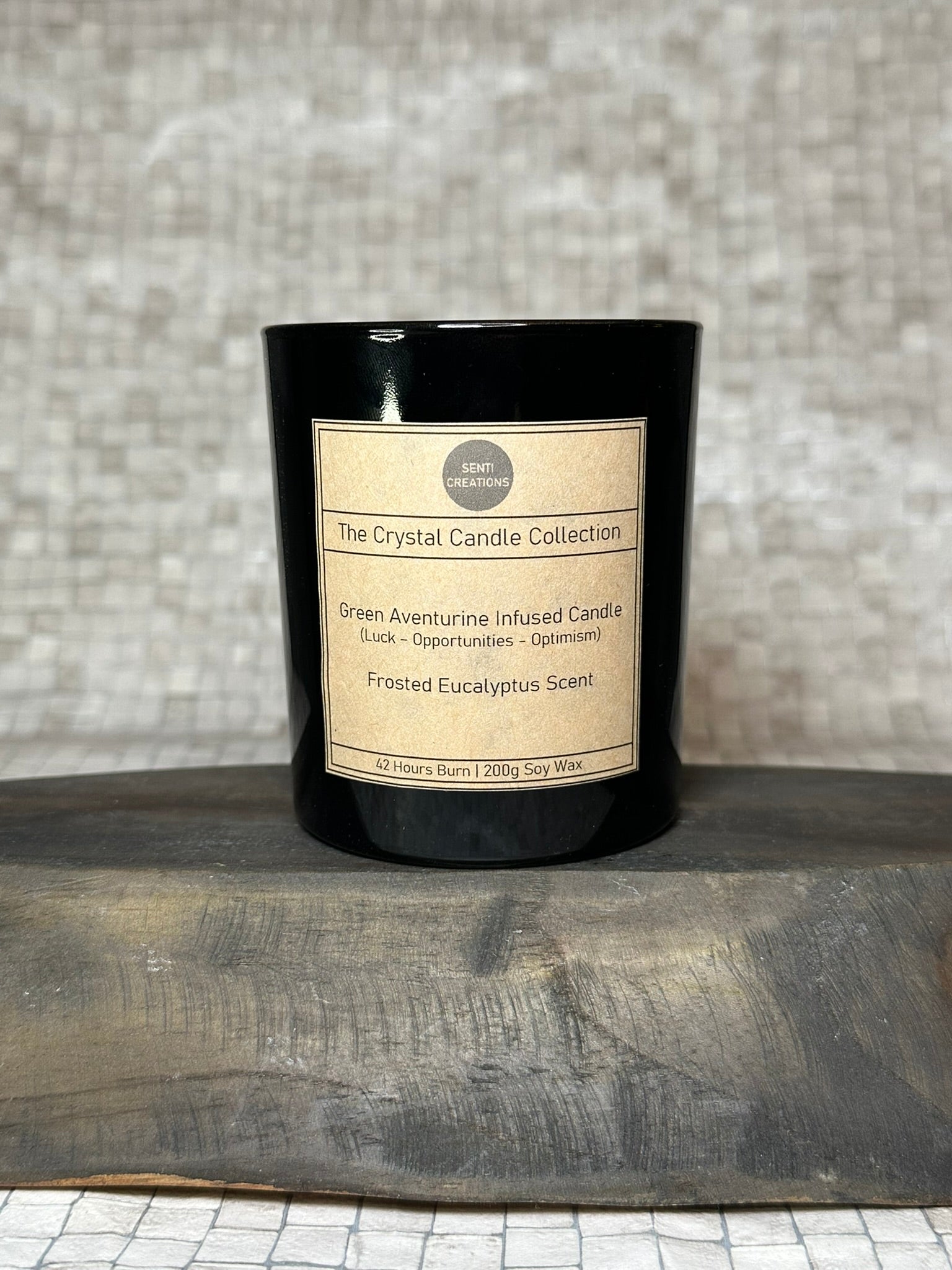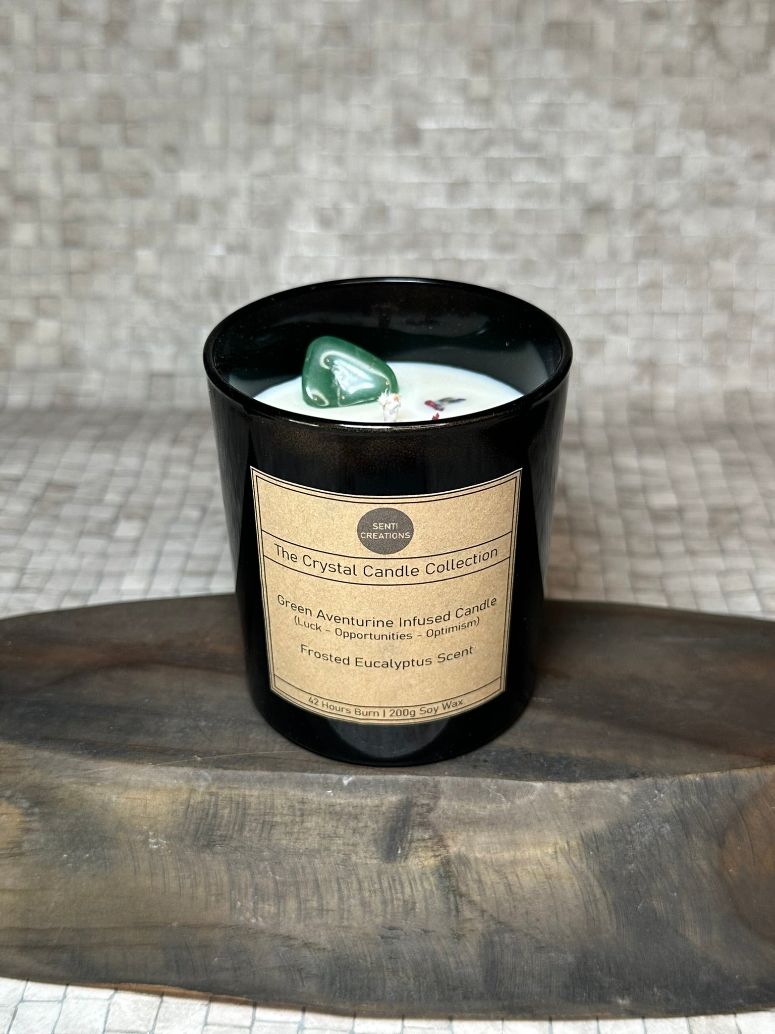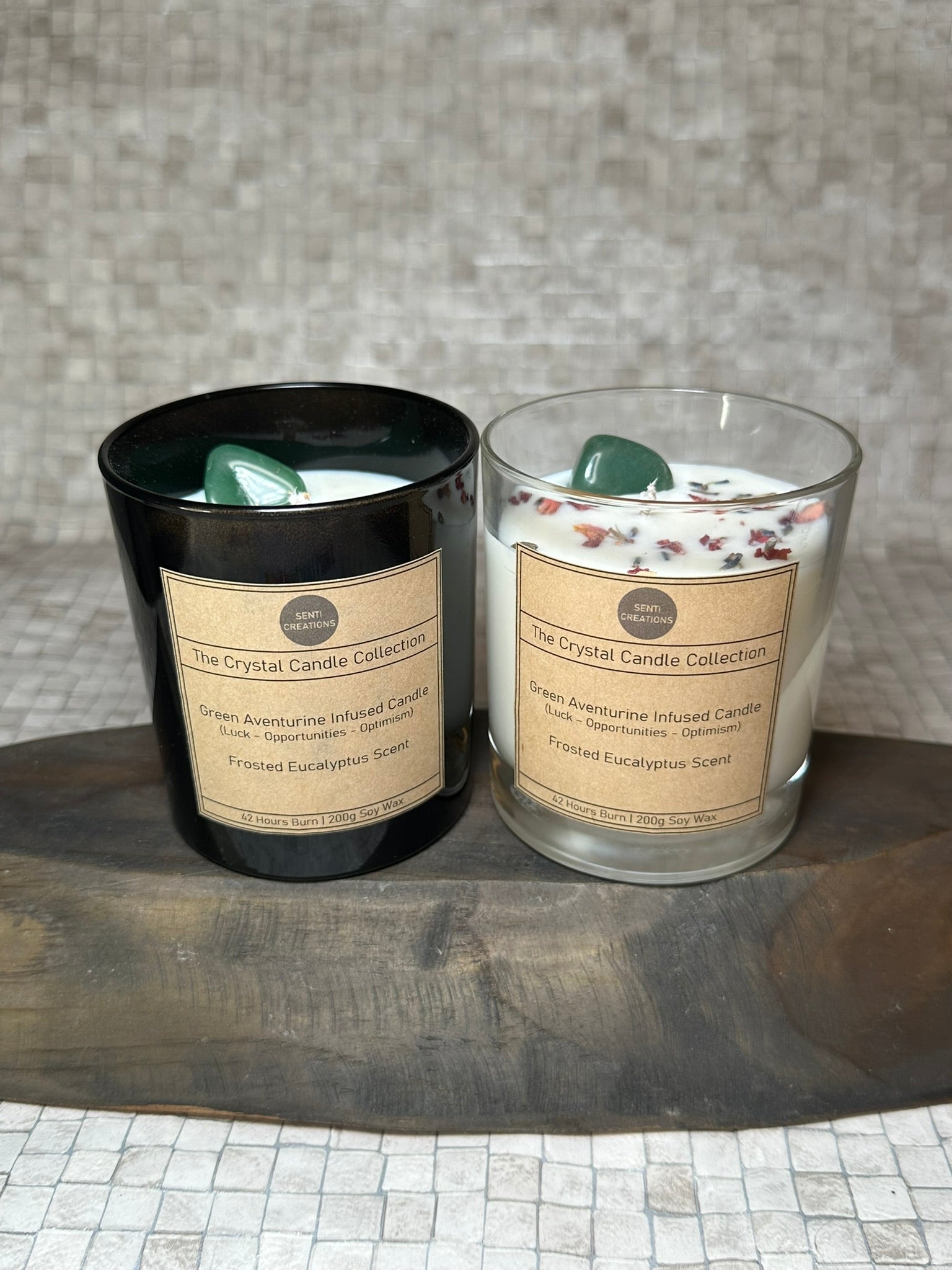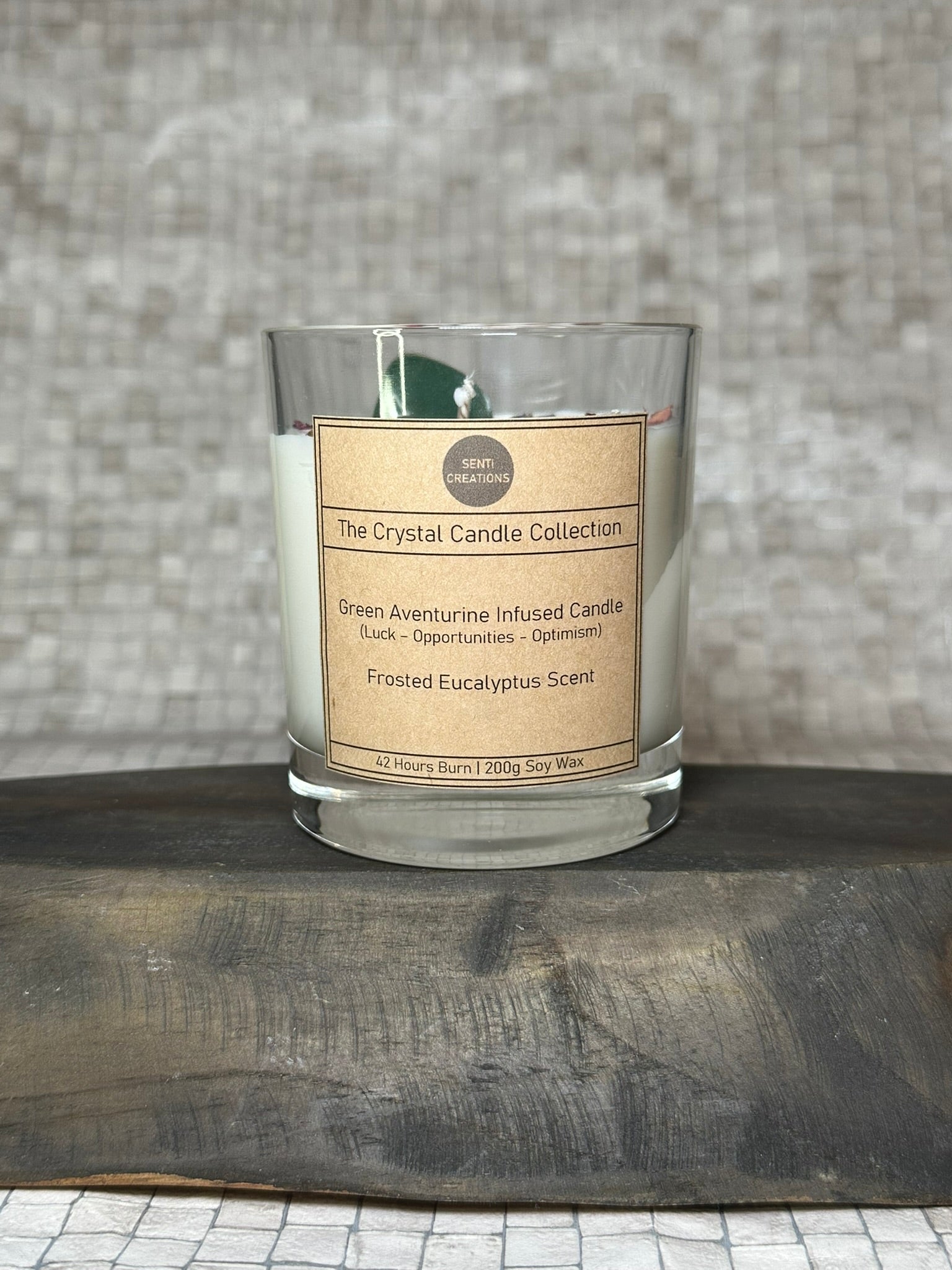 Green Aventurine Infused crystal candle - Frosted Eucalyptus Scent (200g)