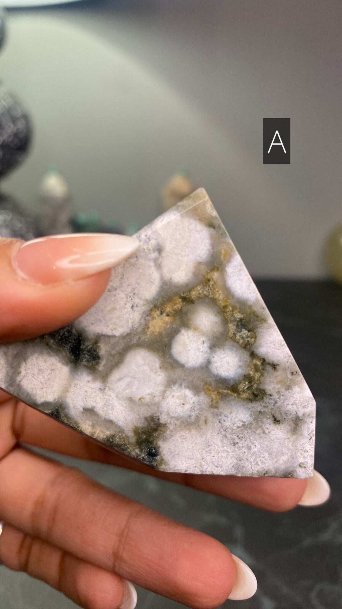 Ocean Jasper alleviates stress and induces tranquillity. Its cleansing effect eliminates negative energy and stabilizes the aura. It makes an ideal worry or rubbing stone for soothing the nerves and increasing one’s focus, and is a wonderful stone for banishing nightmares or harmful thoughts